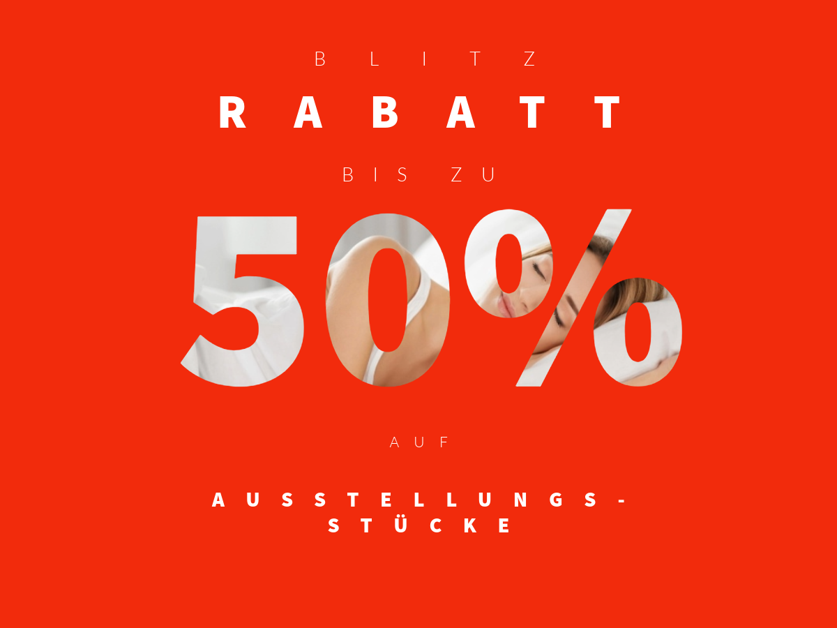 Profitieren Sie jetzt von 50 % Rabatt auf ausgewählte Ausstellungsstücke in unserem Bettenfachgeschäft in Braunschweig!